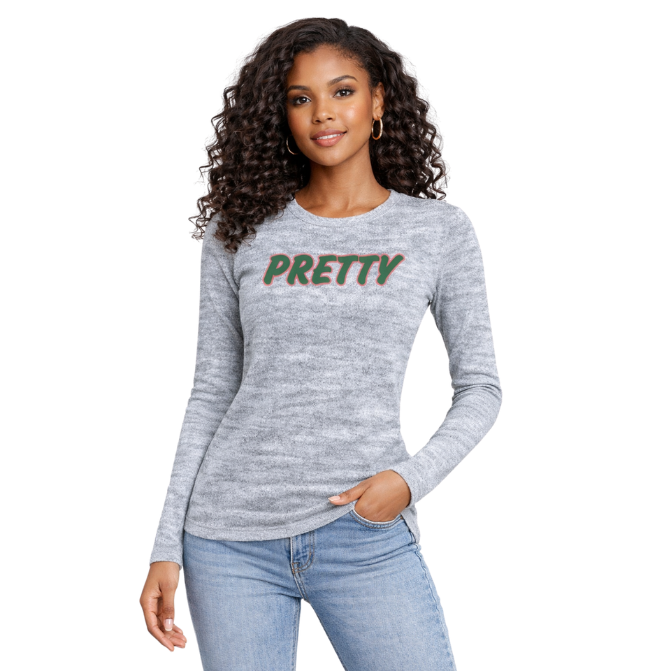 Grey 08 Pretty Girl Long Sleeve T Shirt Greek Sorority Apparel Womens Pink and Green College Sisterhood Stylish Greek Wear