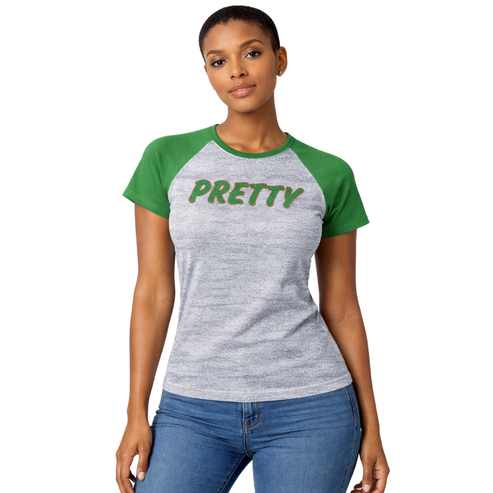 Grey 08 Pretty Girl Raglan Sleeve T Shirt Greek Sorority Apparel Womens Pink and Green College Sisterhood Stylish Greek Wear