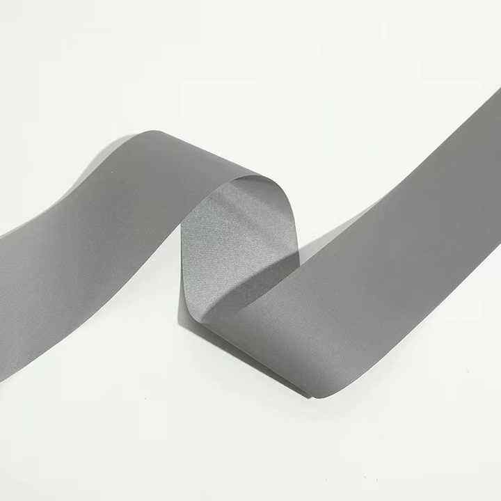 Grey 100% Polyester Light Reflector Tape Strip Reflective Fabric for Clothing