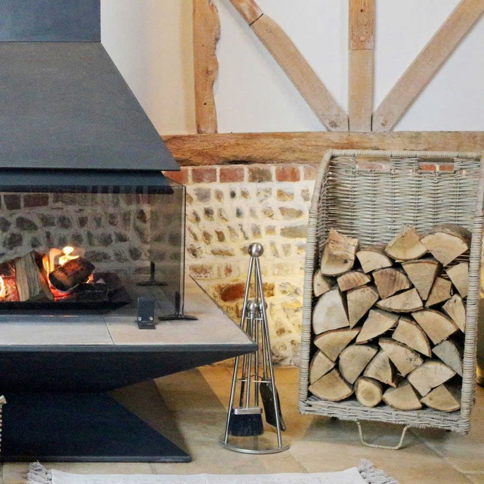 Grey & Buff Rattan Wicker Log Basket TrolleyProduct name