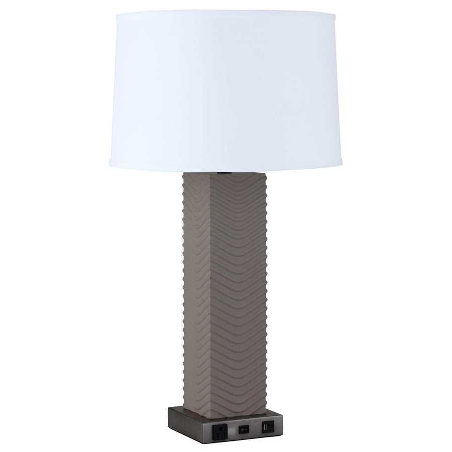 Grey Chevron - Textured Column Table Lamp with White Shade, Modern Desk Lighting with USB & AC Outlet