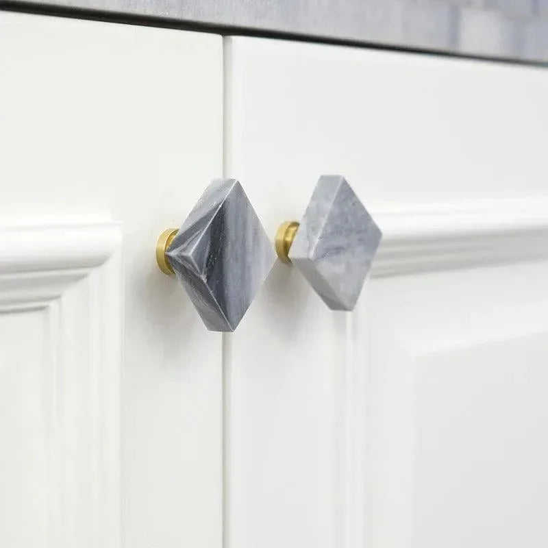 Grey Color Marble Drawer Knob With Brass Frame Decorative Cabinet Furniture Hardware Elegant Modern Wholesale