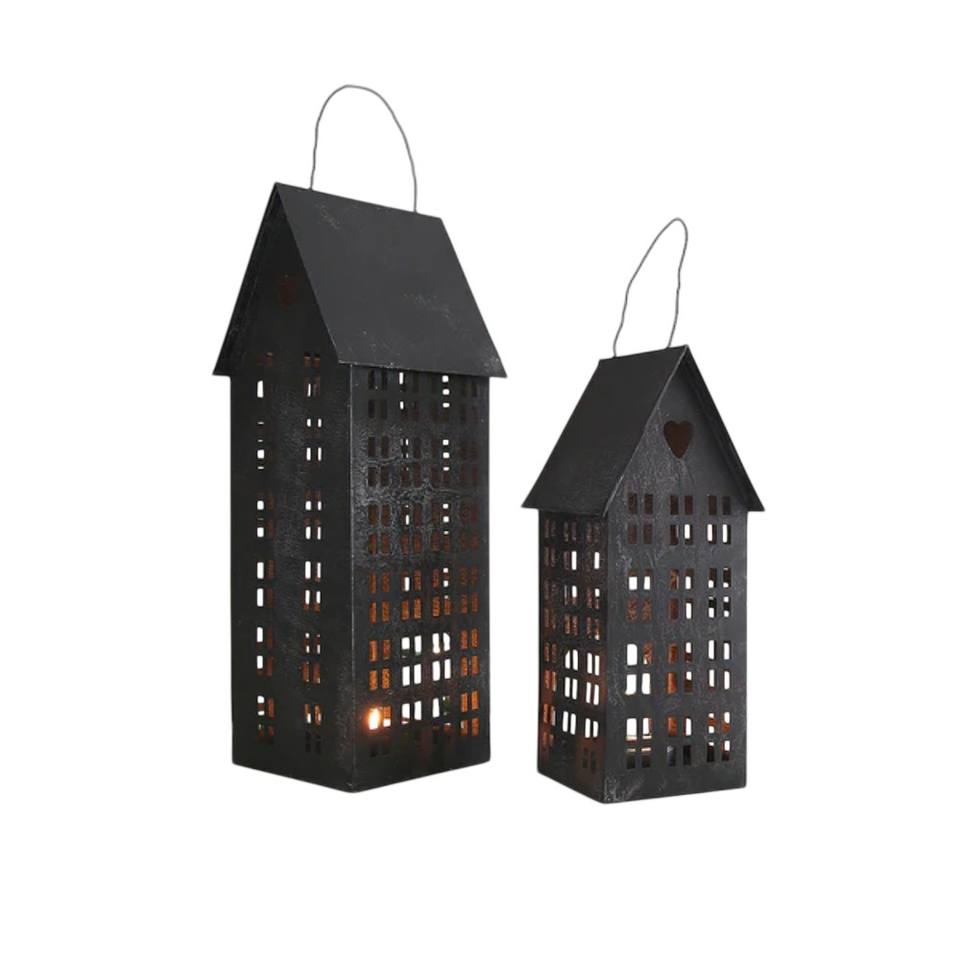 Grey Distressed Metal House Tea Light Candle Holder Lantern Vintage Design House For Home Garden Decor Style Tabletop Ornament