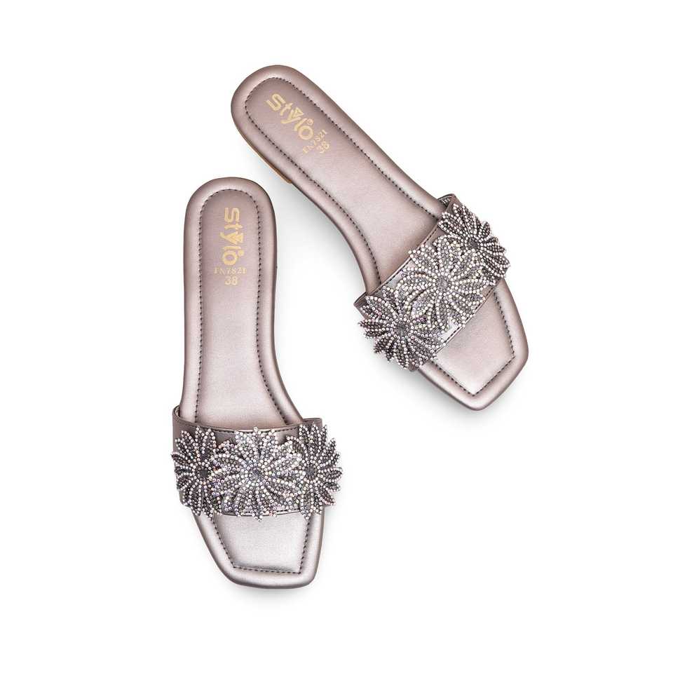 Grey FN7821 Fancy Indoor Slipper Fluffy Faux Fur Insole Comfortable Warm Closed Toe Slip-On Design for Spring Summer Winter Use
