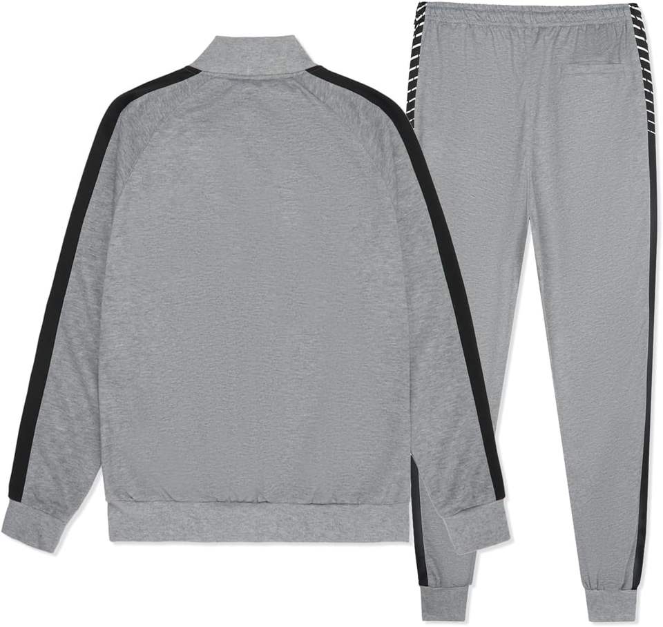 Grey Men's Sweat Suit 2 Piece Outfit Casual Contrast Sports Jogging Tracksuits Set BY STYLE BOY & Co