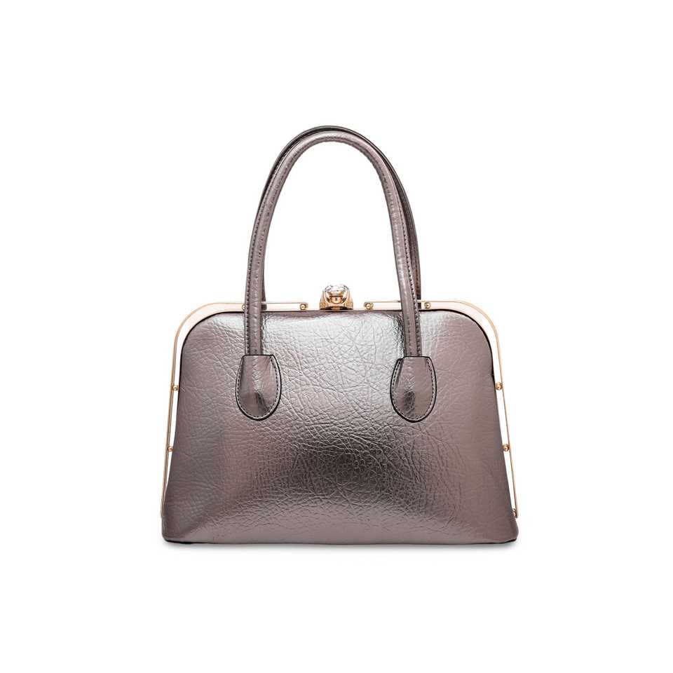 Grey P35839 Leather Handbag for Girls Stylish Casual Tote Two Straps Flap Closure Pearl Chain Leather Lining Fancy Print Chain