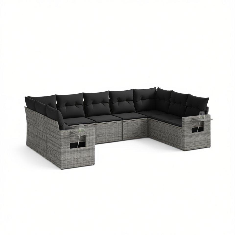 Grey Pe Rattan Garden Sofa Set With Steel Frame Outdoor Furniture 6 Seater Elegant Design For Patio Or Backyard Use