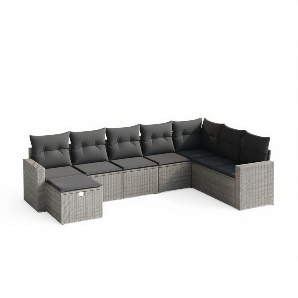 Grey Poly Rattan Garden Sofa Set Powder Coated Steel Frame 6 Seater Outdoor Furniture Contemporary Design Weather Resistant