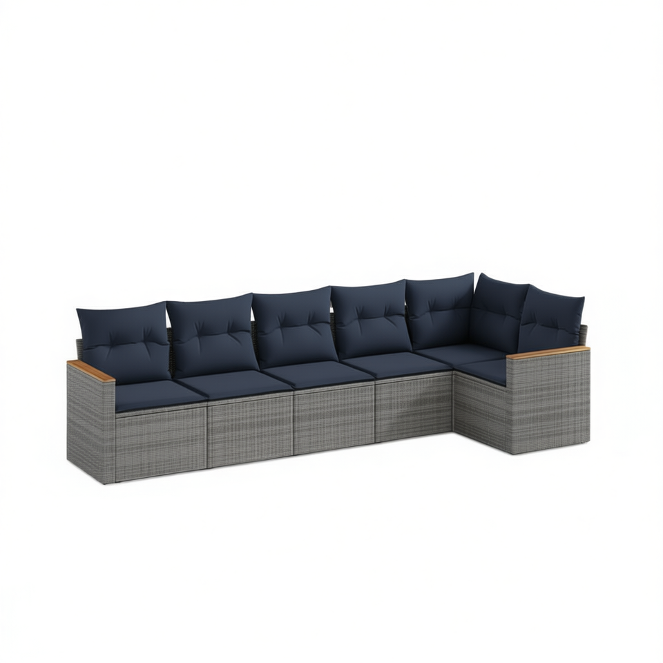 Grey Poly Rattan Garden Sofa Set With Cushions 6 Seater Outdoor Furniture Contemporary Design
