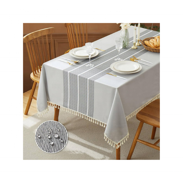 Grey Pure Cotton Embroidered Durable Eco-Friendly New Ideal Gatherings Homes 60x90 Inches Machine Washable Perfect Tablecloth