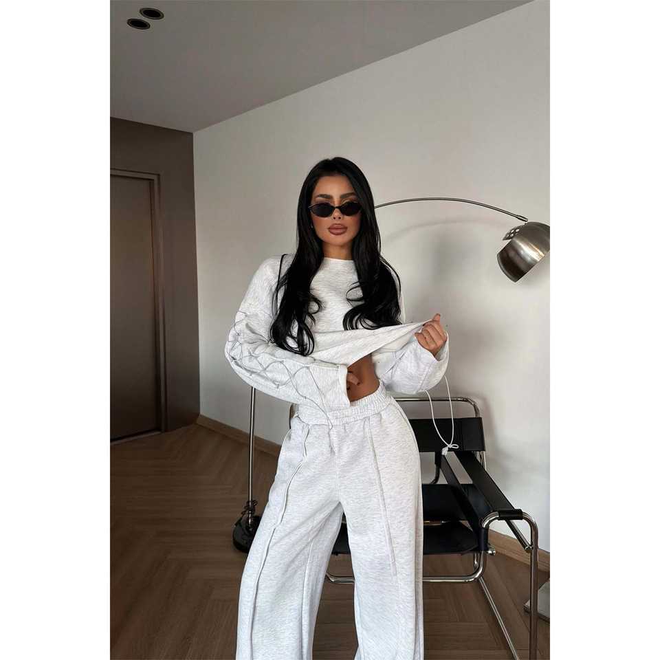 Grey Stitch Detail Tracksuit Set