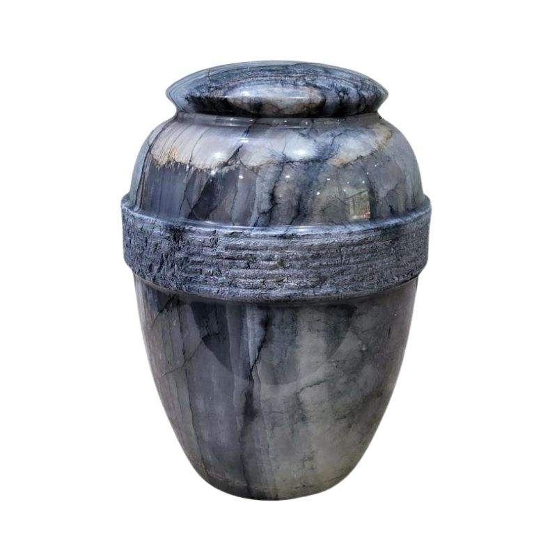 Grey Thunder Vein Marble Eco-Friendly Cremation Urn Human Ashes Textured Band Handcrafted Polished Stone European/American Style