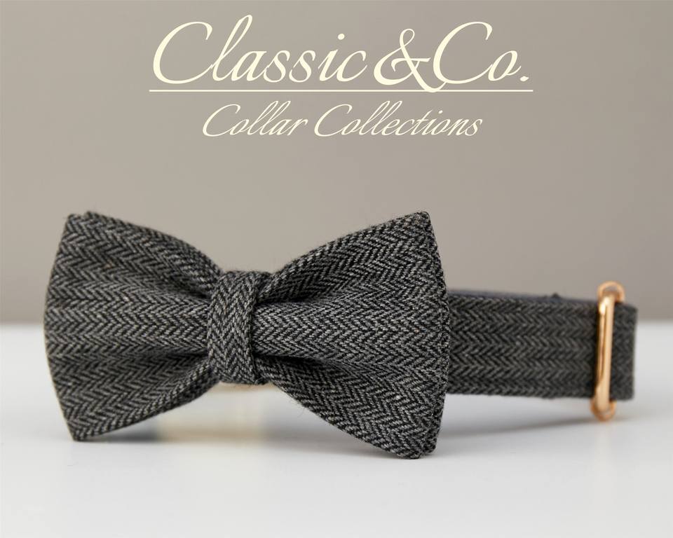 Grey Tweed Personalized Dog Collar Bow Tie Leash Set,Custom Eraved Pet Name Metal Buckle,Lilac Birthday Puppy Gift,FREE