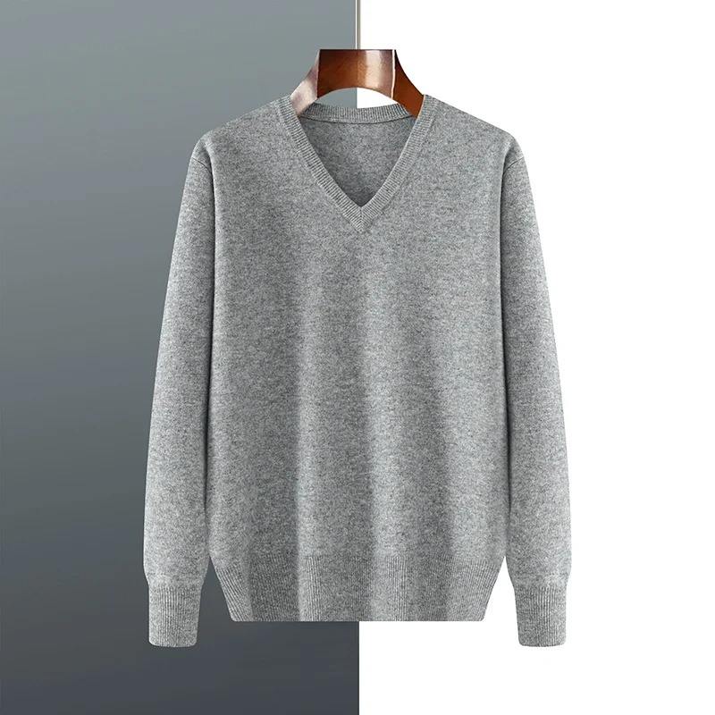 Grey V Neck Sweater for Men Long Sleeve Knitted Pullover Soft Warm Casual Winter Wear Classic Comfortable Stylish Knitwear