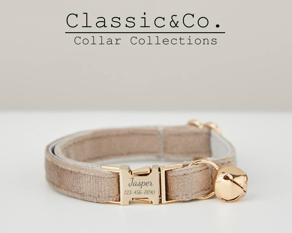 Grey Veet Personalized Cat & Small Dog Collar Bow Tie Leash Set,Free Engraved Kitten Puppy Name Tag,Gold Bell,Pet Birthday Gift