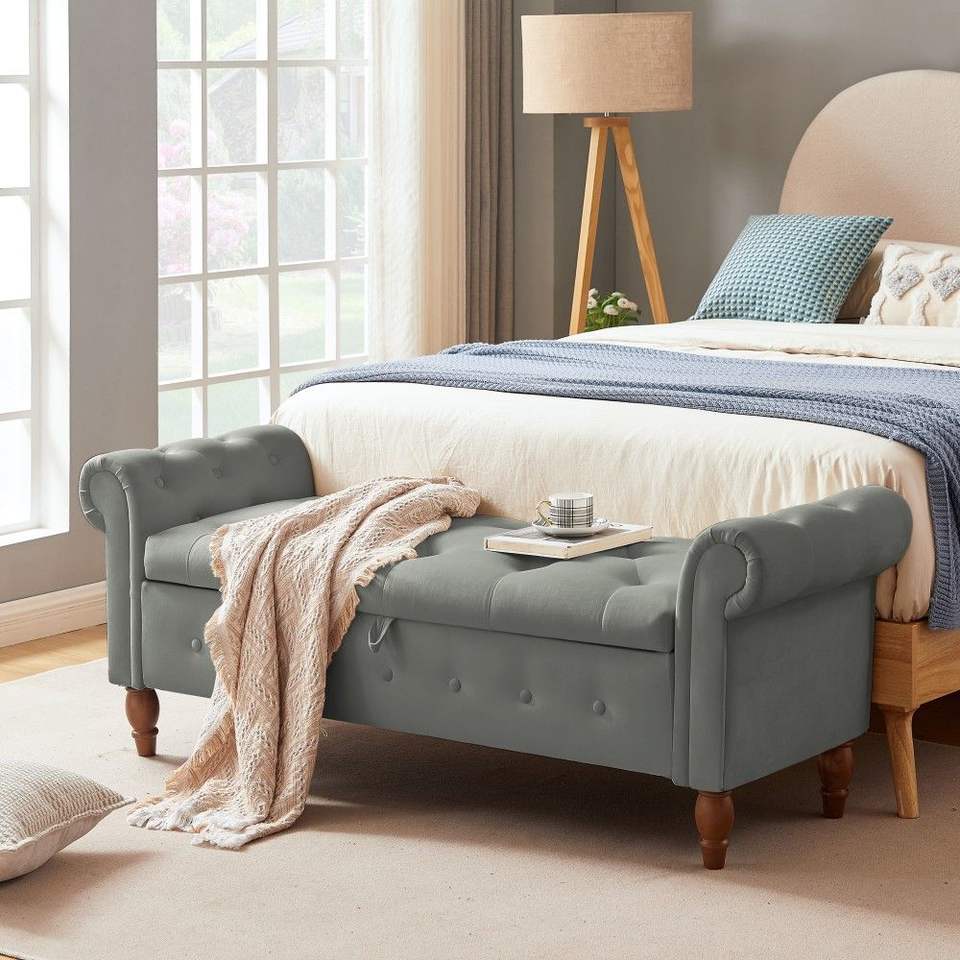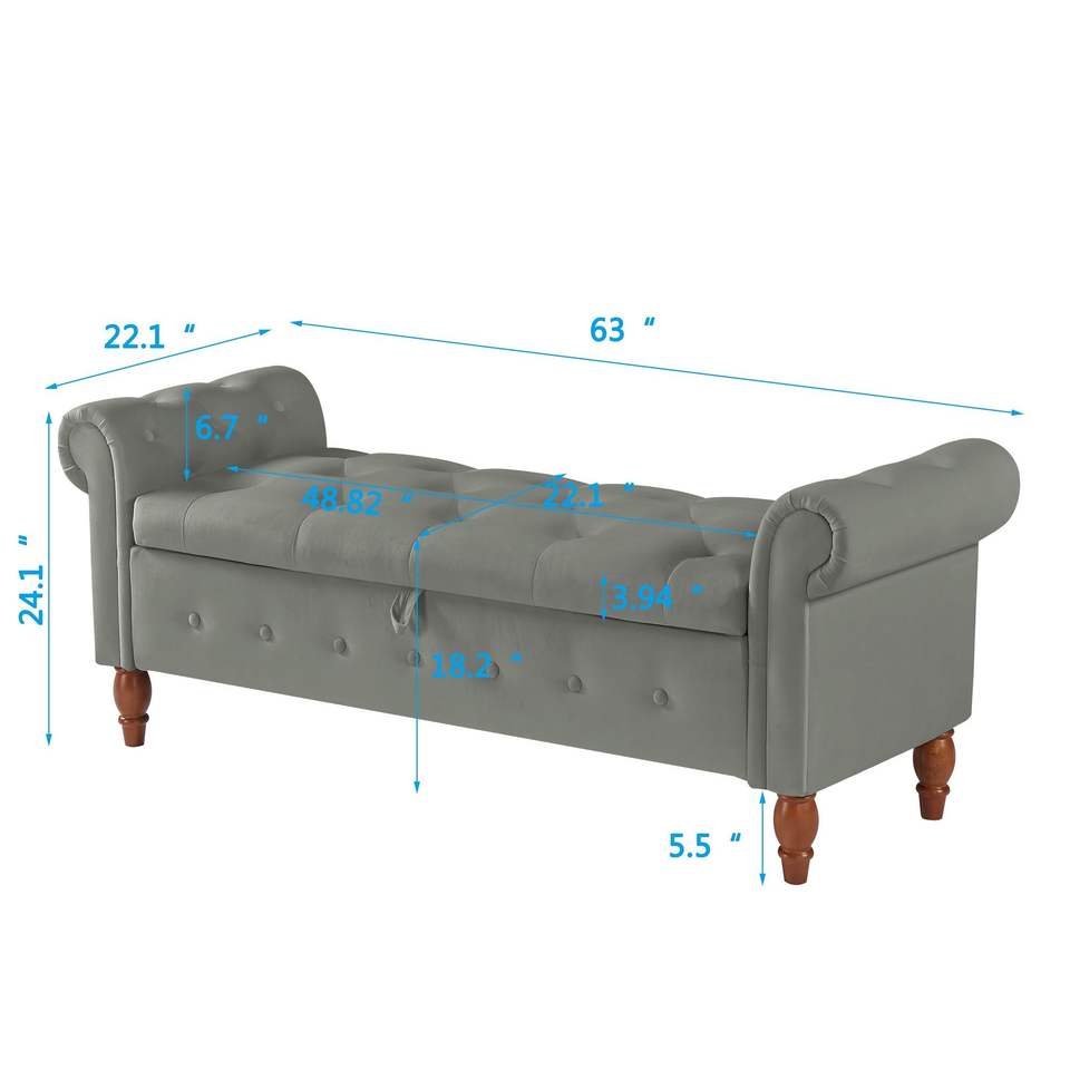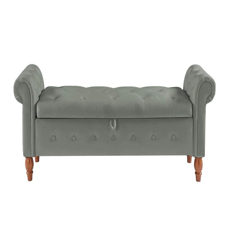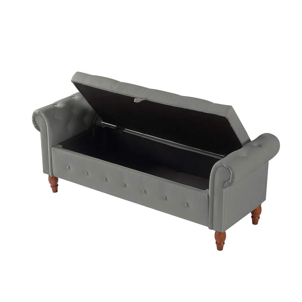 Grey Velvet Rectangular Sofa Stool Multifunctional Storage Bedroom Furniture