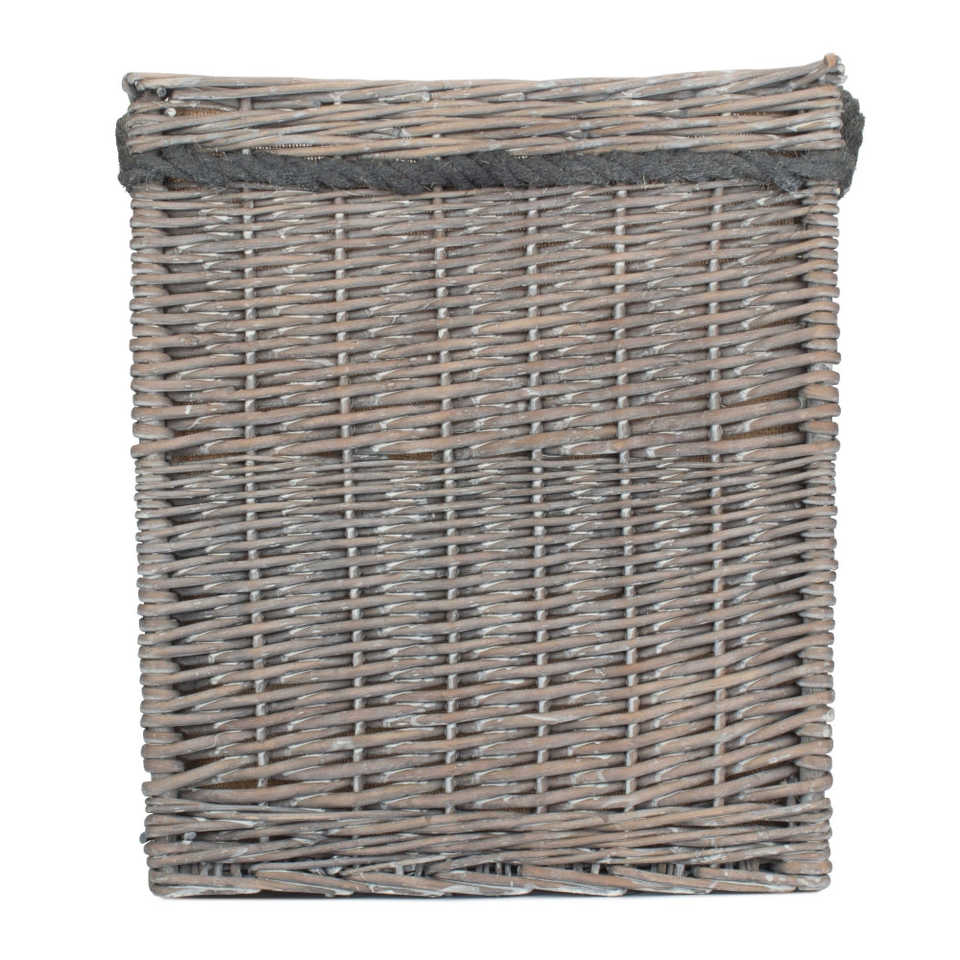 Grey Wash Square Wicker Basket with Hessian Lining Log Basket