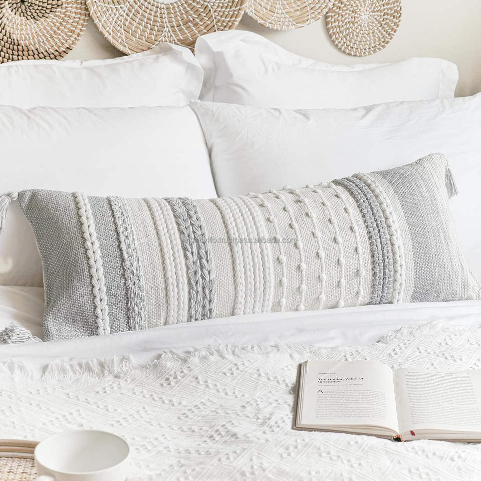 Grey & White Lumbar Decorative Boho Pillow Covers Sofa Cushion Indian Handmade Farmhouse Summer Pillow Covers on Cheap Price