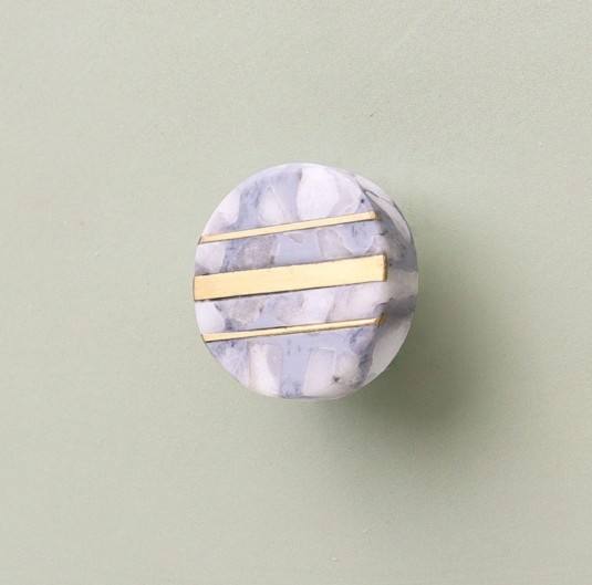Grey and White Stone Brass Plated Dresser Knobs Decorative Cabinet Pull Handles for Drawer Wardrobe and Home Furniture Decor Use