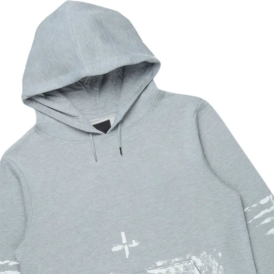 Grey mens printed hoodie and jogger tracksuit stylish streetwear casual fashion gym workout activewear comfortable sport outfit