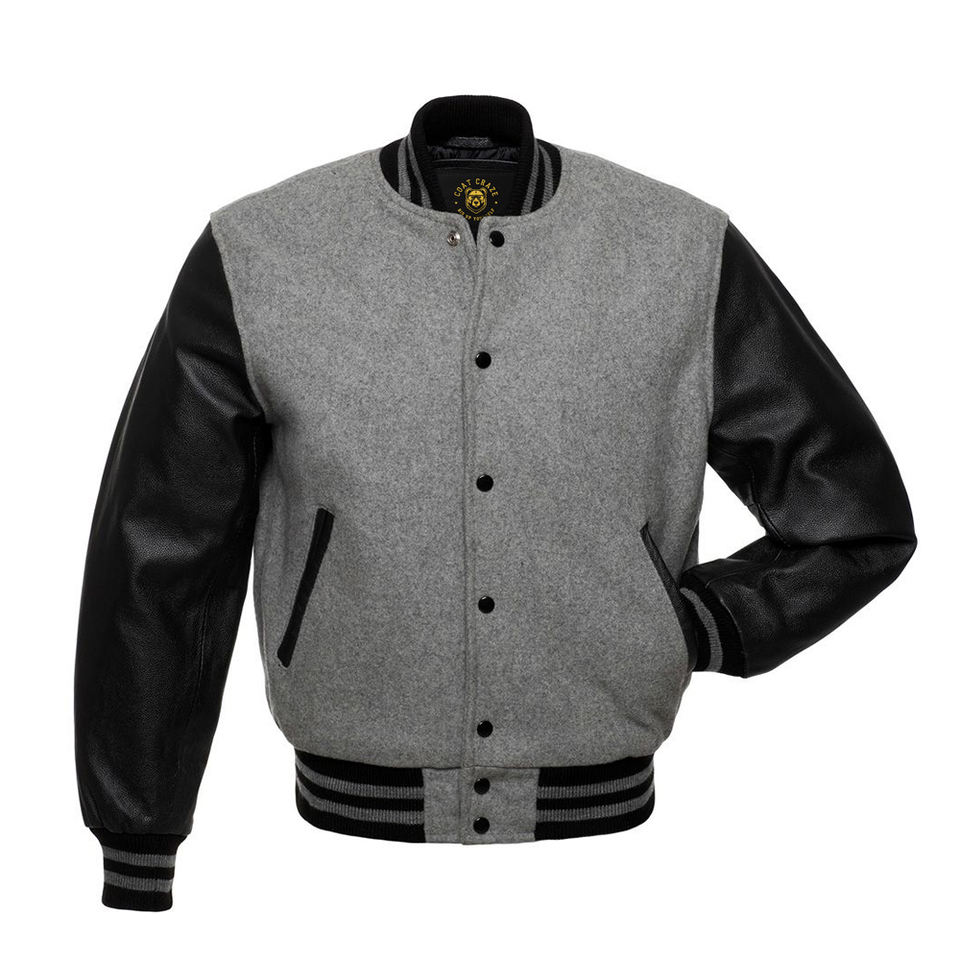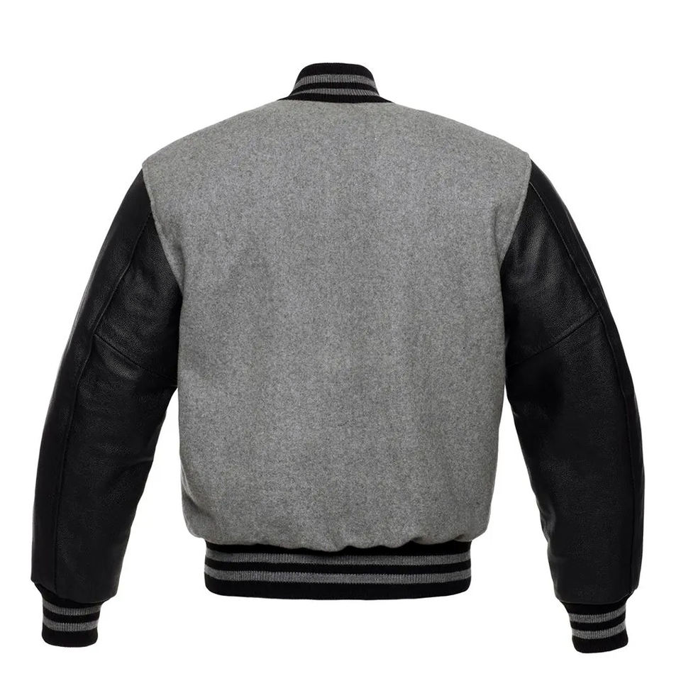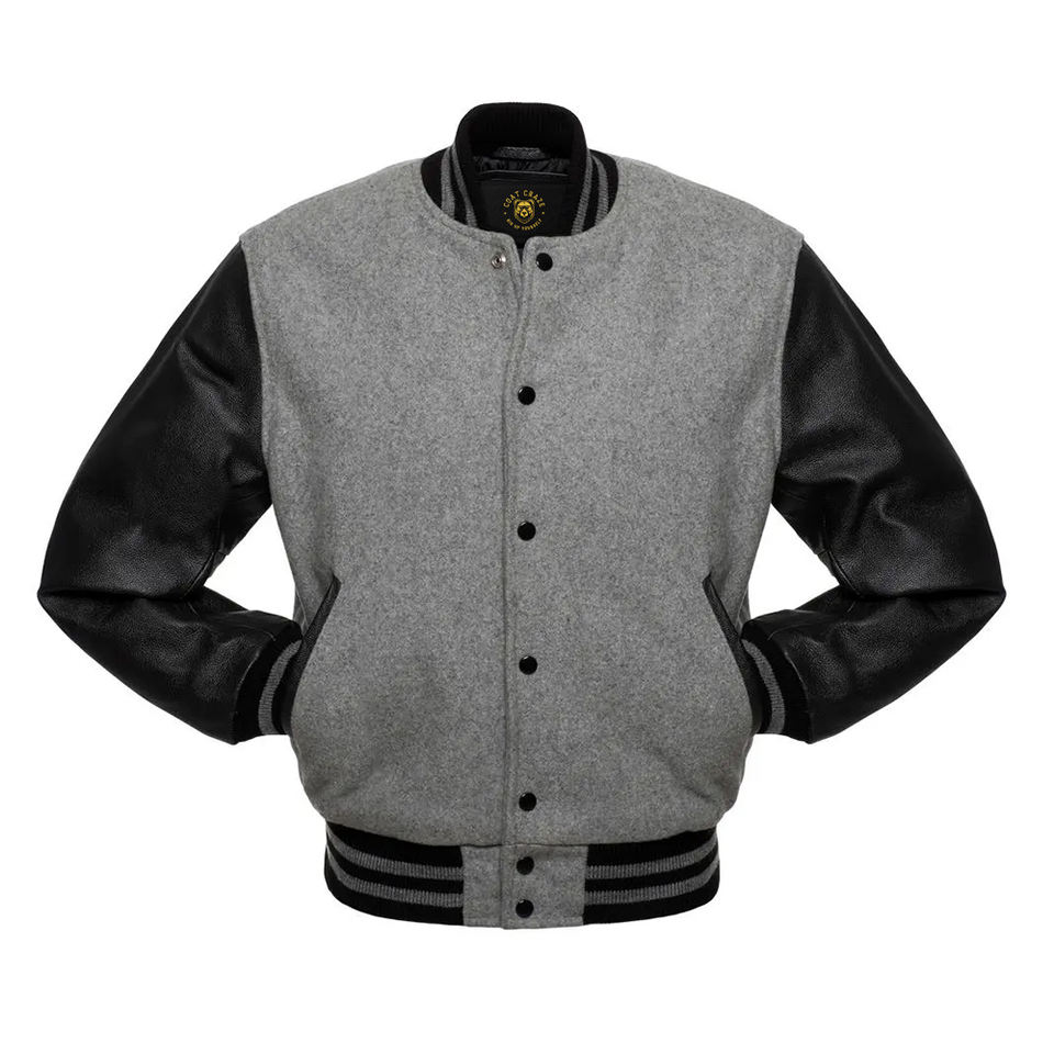Grey varsity jacket men Letterman Jacket with gold Leather Sleeves wholesale letterman custom leather varsity jacket for men