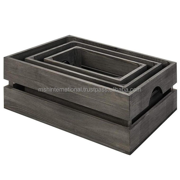 Grey Wood Nesting Wood Chip Woven Basket Creative Fruit Bread Picnic Vegetable Rattan Carrying Basket Kitchen Storage Basket