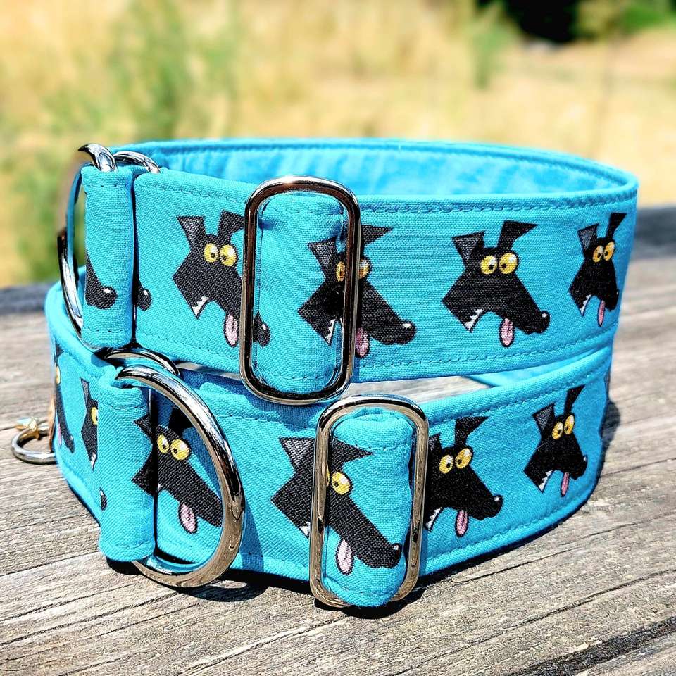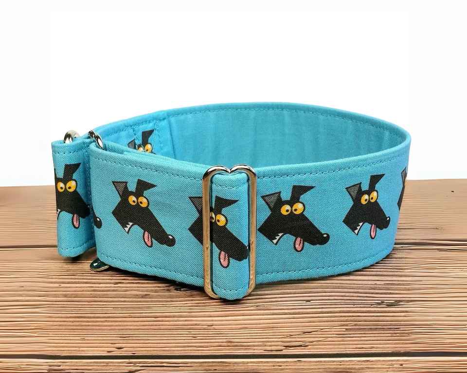 Greyhound Cyan Fabric Dog Richard Skipworth Martingale Or Buckle, Sighthound Collar, Whippet Collar / Derp Blue
