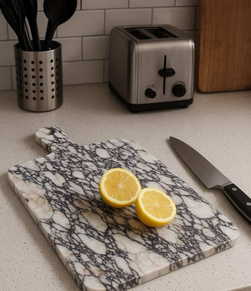 Greyish Black Eco-Friendly Marble Rectangle Shaped Chopping Board with Handle for Vegetable and Cheese Cutting Kitchenware