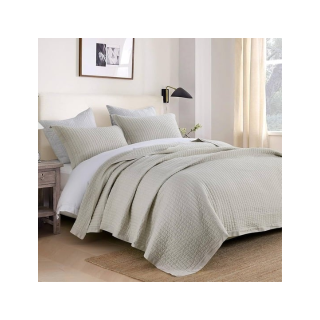 Greyish Round 300TC Geometric Pattern GOTS Organic Lightweight Bedspread For Hotel Eco-Friendly King Size Premium Indian Bedroom