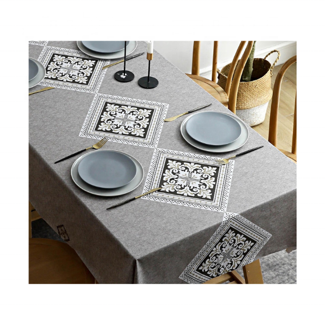 Greyish Square Mandala Organic Cotton Embroidered GOTS Certified Durable Perfect Gatherings Families 70x120 Inches Tablecloth