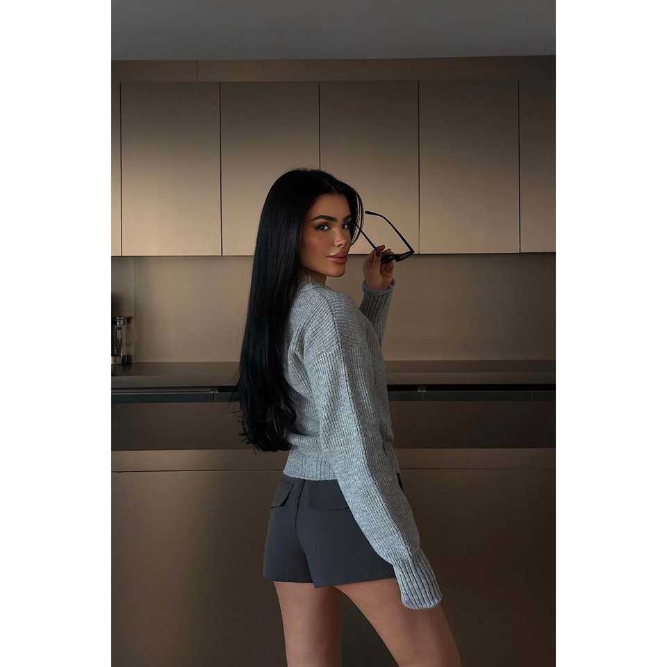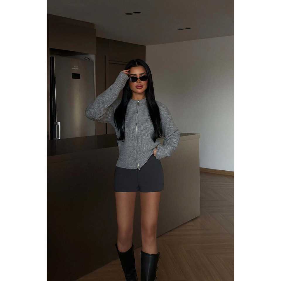 Gri Lilja Casual Cardigan Sweater with Jacquard Embroidery and Button Decoration for Spring Autumn Winter