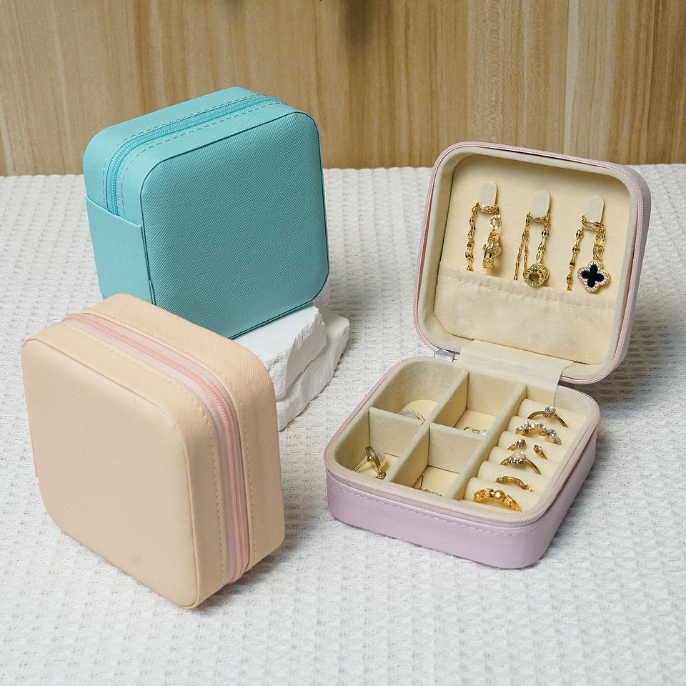Grillz Display Texture Lavender square Leather Travel Organizer Black Handle Jewelry Box for Box Jewelry Organizer for Drawer