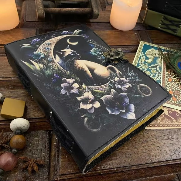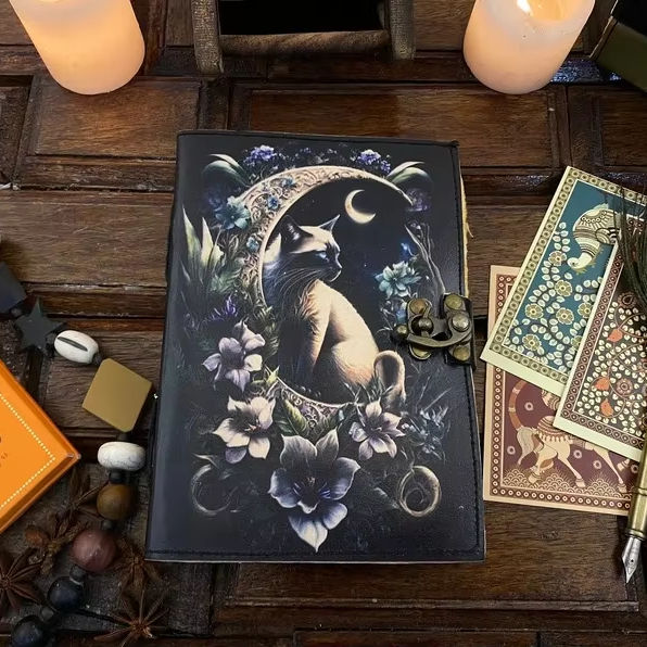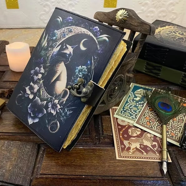 Type:Grimoire Cat Leather Journal Notebook Sketchbook Book of shadow