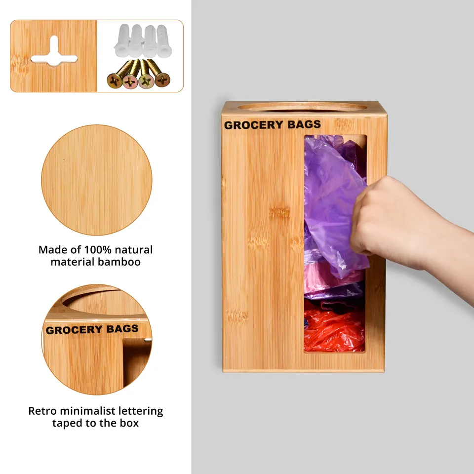 Name:Grocery Bag Dispenser Bamboo Storage Bag Holder This Large Capacity