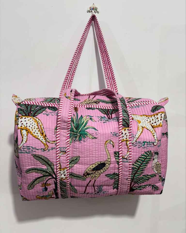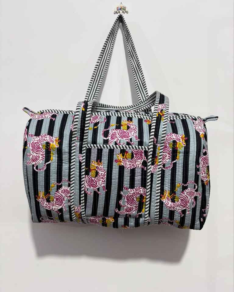 Grocery Shopping Hand Block Print Duffle Bags Boho Weekender Travel Overnight Luggage Bags Handmade Quilted