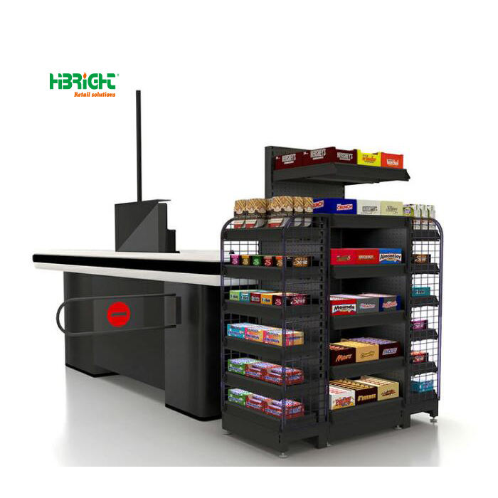 Grocery Store Retail Cash Desk Steel Supermarket Checkout Counter for Sale