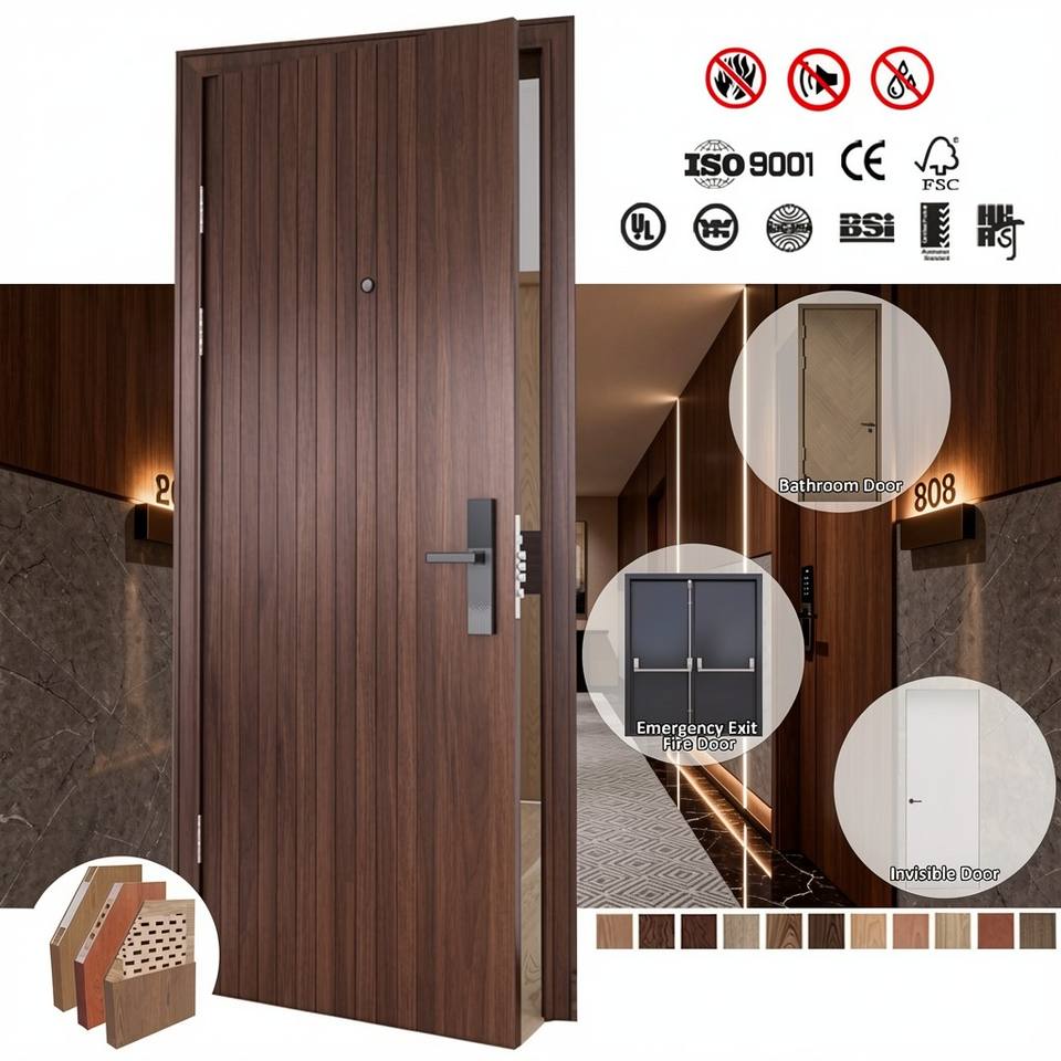 Guangdong Custom American Approved for Listed Fire Rated Solid Wood Interior Veneer Door with Manual Opening