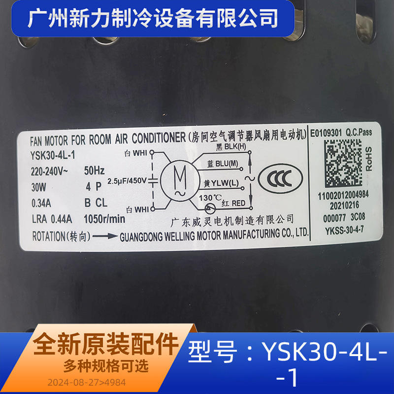 Guangdong Welling YSK30-4L-1 Fan Motor 220-240V 50Hz 30W For Air Conditioner Replacement Part