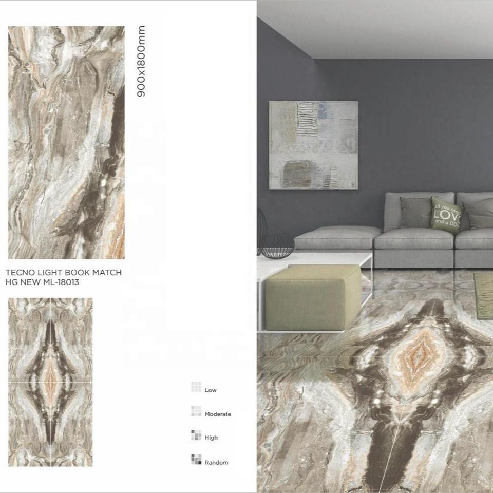 Guangzhou Foshan 900x1800mm Polished Porcelain Tiles 36x72 Wall Cover 3x6 ft Floor Tiles Techno Light Book Match Bathroom Use