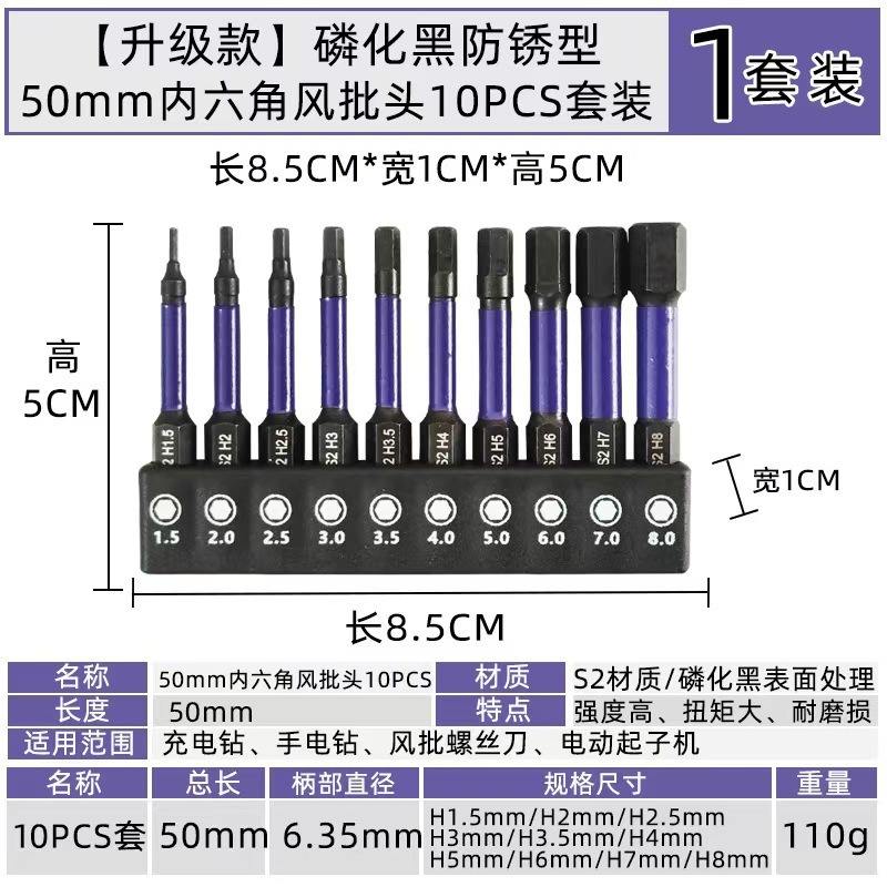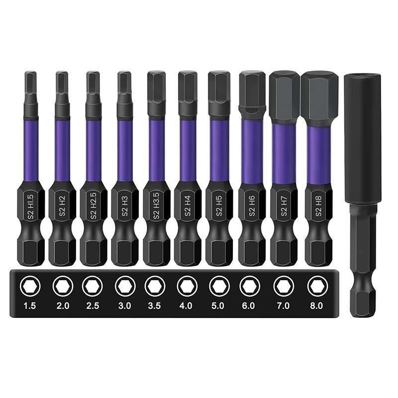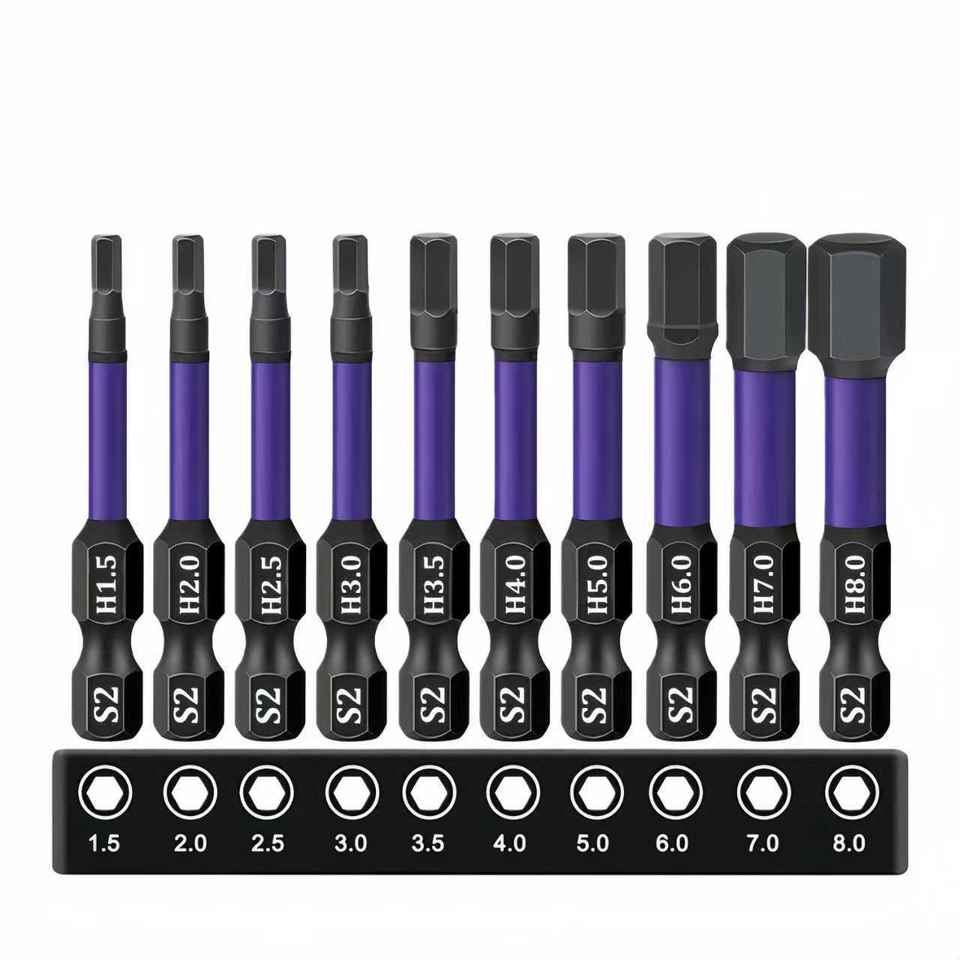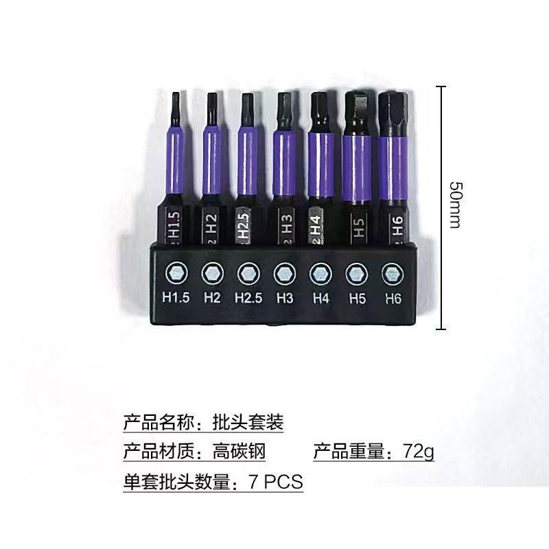 Guest Quality Hex Screwdriver Bit Set 50mm Purple H1.5 H2 H2.5 H3 H4 H5 H6 High Carbon Steel 7 Pcs