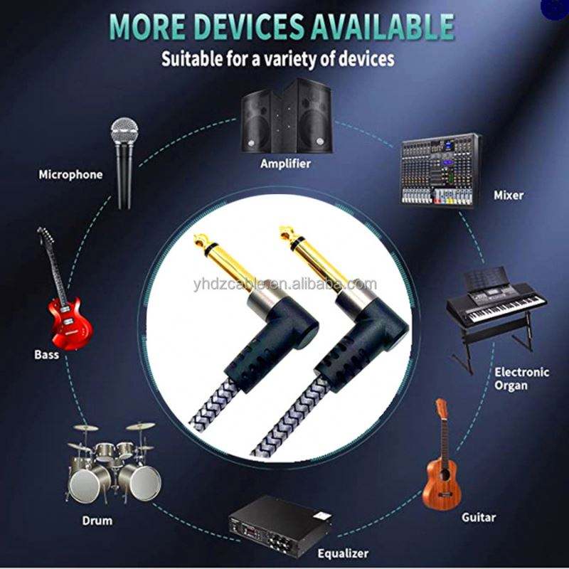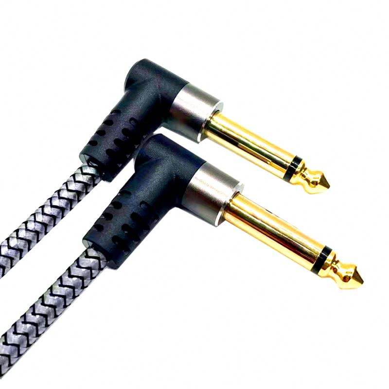 Guitar Patch Cables 6-Inch 0.15m 6.35MM Right-Angle Male-Male PVC Braided Audio Cable for Microphone/Speaker/Effects Pedal