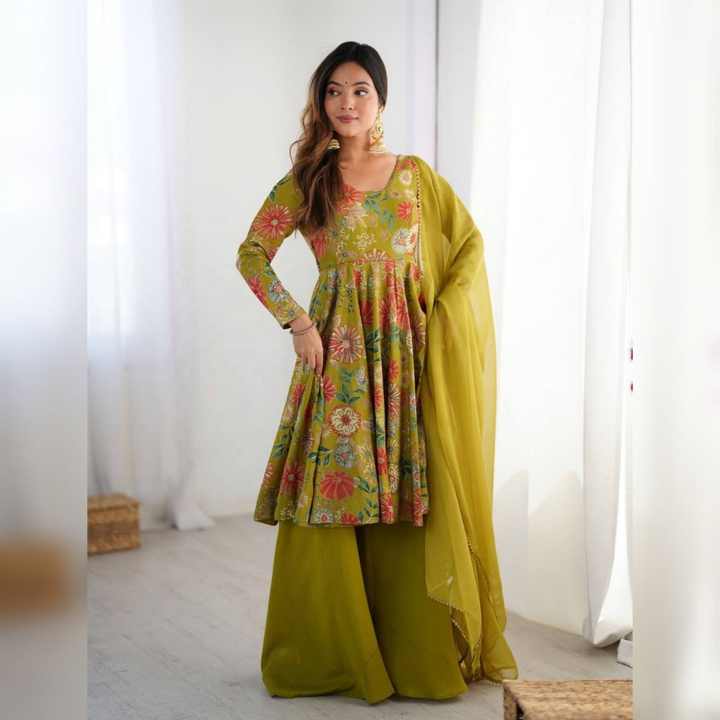 PURE ROMANSILK CHANDERI FREE SIZE FULLY STTICHEDMaterial