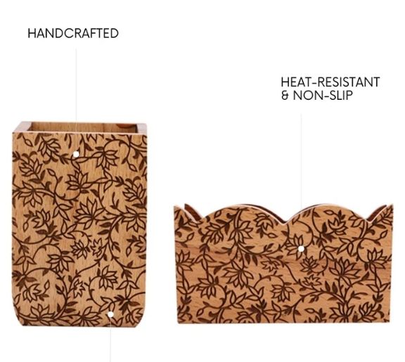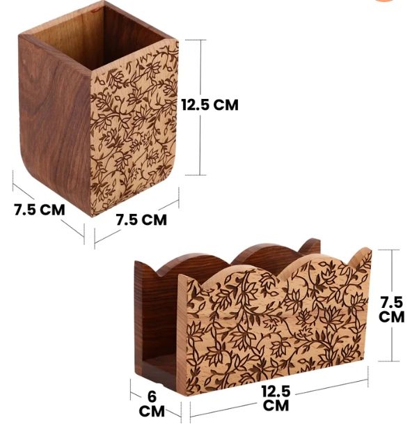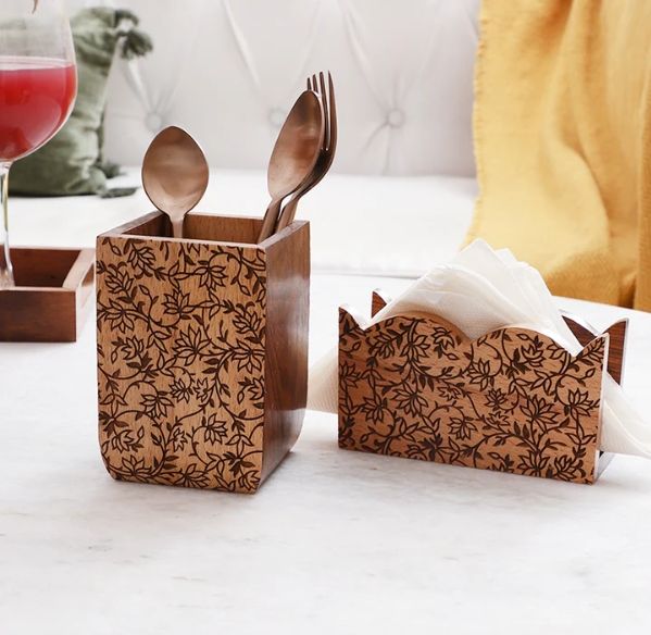 Gul Sheesham & Beech Wood Cutlery & Napkin Holder Set Mango Wood Wooden Utensil Caddy Countertop Cutlery Holder