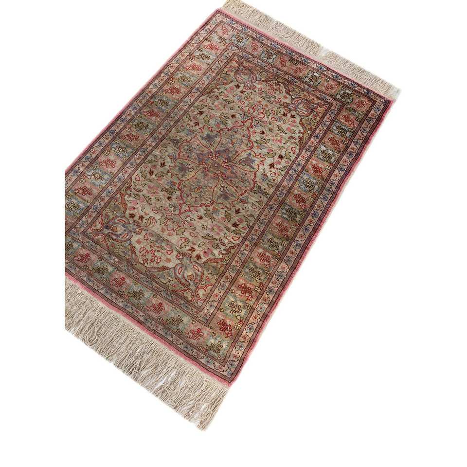 Gulmarg Hand Knotted Silk Rug Red Orange Medallion Pattern Rectangle Puzzle Design for Home Living Pae-5994 Handmade Techniques