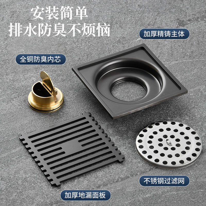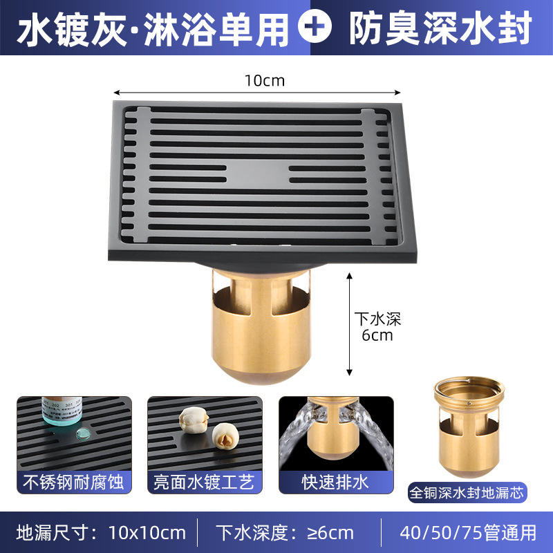 Pure Music Gun Gray Linear Floor Drain Stainless Steel 4.5 Water Seal New Chinese Bathroom Sewer Strip Shower Deodorizing Core