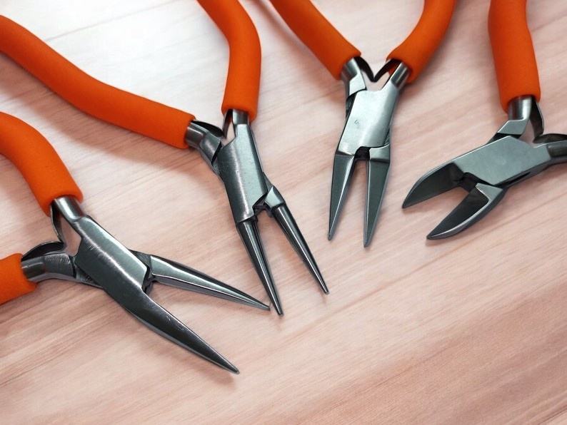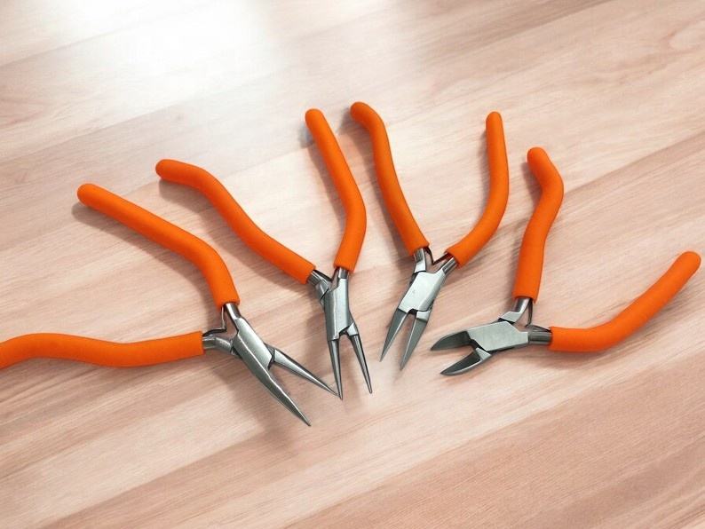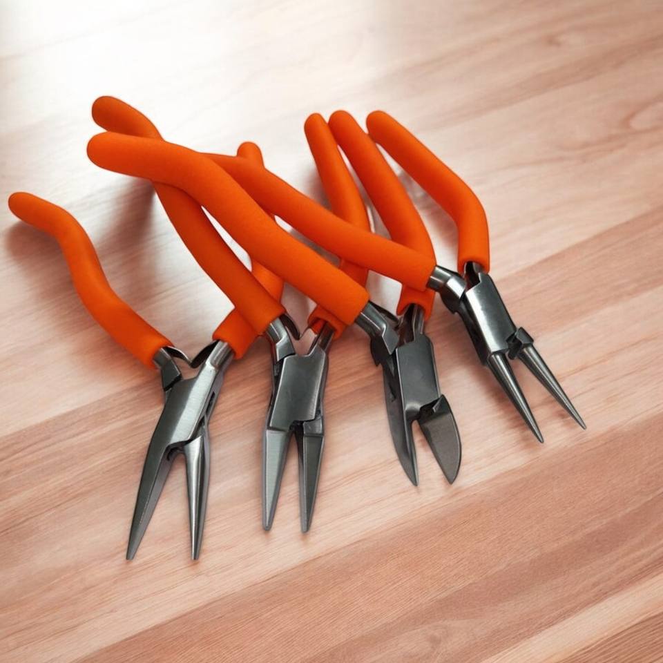 Gun Handle Ergonomic Pliers - 4 Piece Set (Round Nose, Chain Nose, Flat Nose, Side Cutter