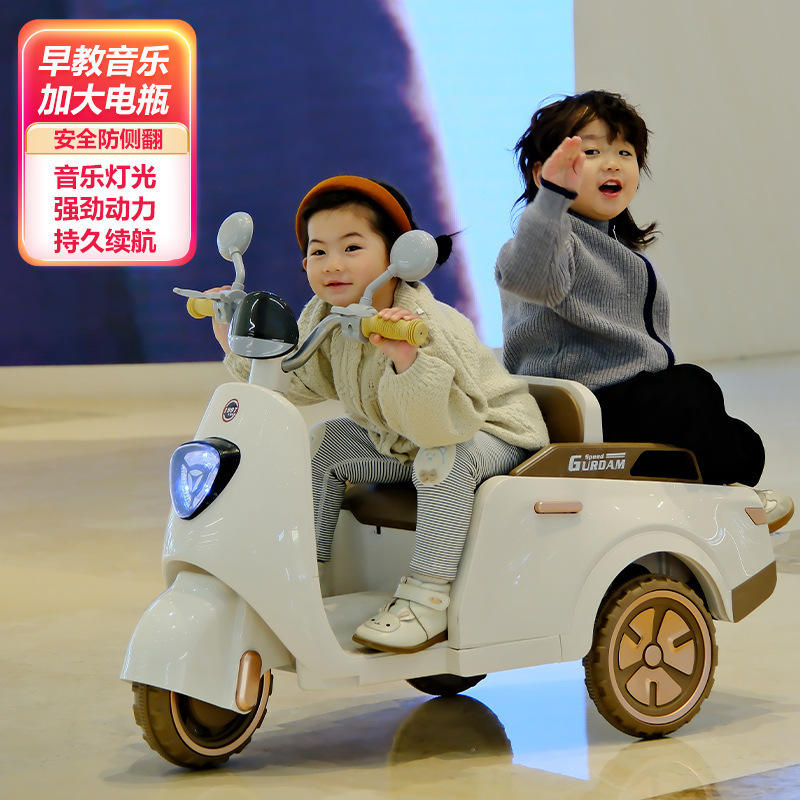 Gurdam Children Electric Motorcycle Tricycle Rechargeable Double Seat Kids Ride On Toy Car With Music Lights