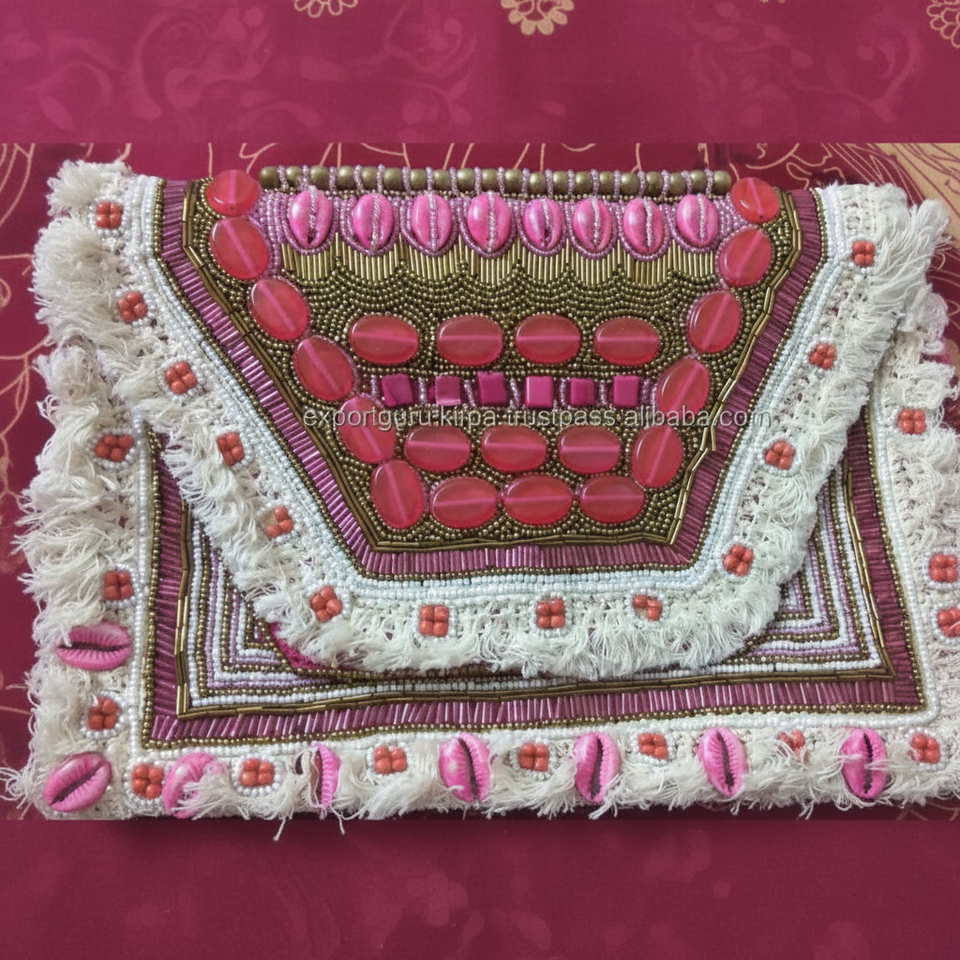 Guru Kirpa Export House's High Quality Designer Canvas Handbag Custom Beads Evening Clutch Bag for Travel Wholesale