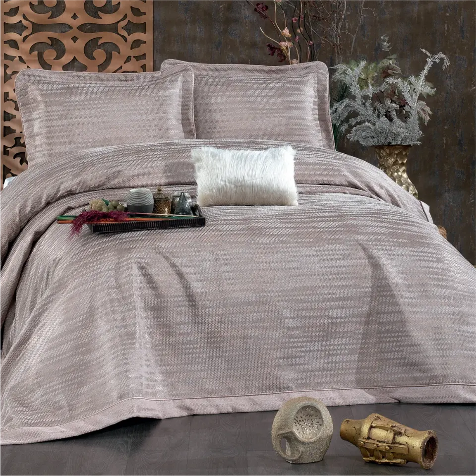 Guzide ALINA 100% Chenille Luxurious Woven King Size Bedspread Set 4-Piece Solid Pattern Bed Cover From Turkey