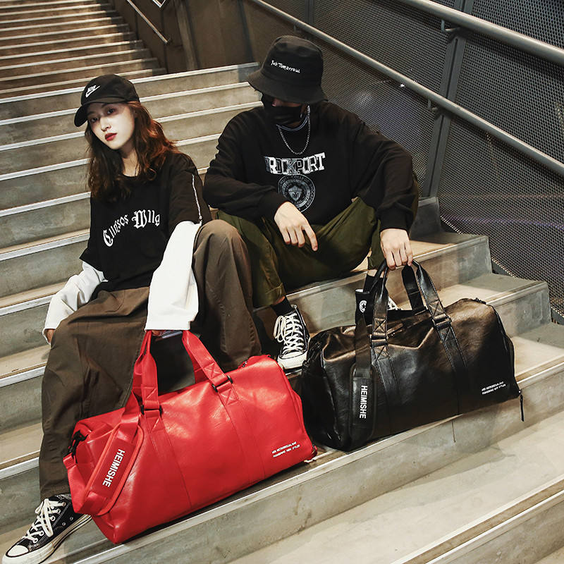 Gym Bag Large Capacity Shoulder Weekender PU Waterproof Duffel Short-Distance Tote Travel Bag Geometric Pattern Travel Bag